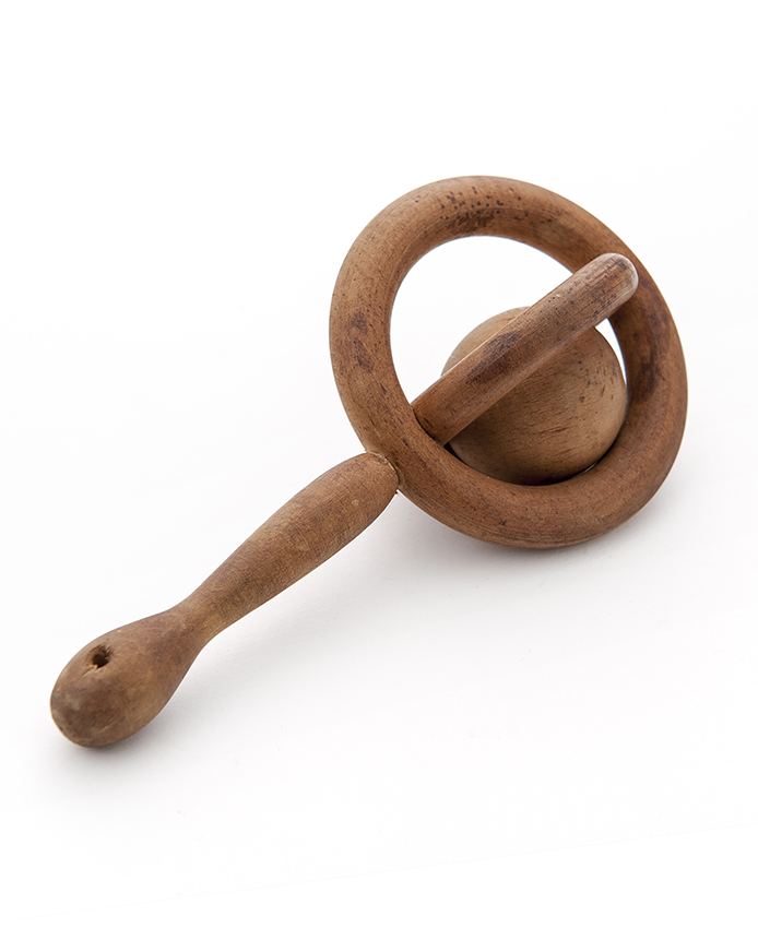 Physical description: Houten handwijzer, massief houten onderarm met de zogenaamde vijgenhand, waarbij de duim tussen wijs- en middelvinger is gesticken. De arm is voorzien van metalen nagels, armband en een mouw met bloemdecoratie en oogje waaraan een ketting is bevestigd.